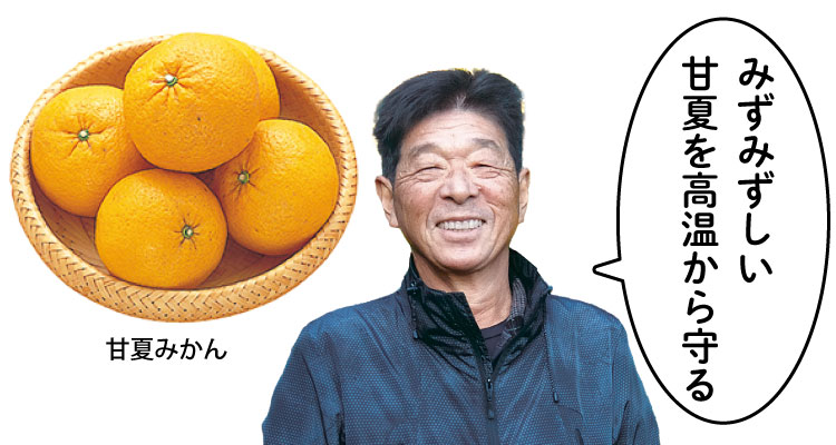甘夏への〝サビダニ被害〞が拡大しています。サビダニは夏を過ぎると活動を弱めていたのですが、夏が長くなり高温の時期ではなく、暑さが残る秋に活動が活発になりました。8月の農薬散布ではサビダニを防ぐことができず、秋の被害果が多くなり、生産量に影響しています。夏の高温と強い日射は、甘夏の果皮を変色させ、変色部分は中身も硬くなり水分を失います。このため、〝日焼け〞と呼ばれる被害果が増えました。可能な範囲の中で、サビダニに集中した農薬散布を試しながら、安定した収穫ができるように日々工夫しています。
