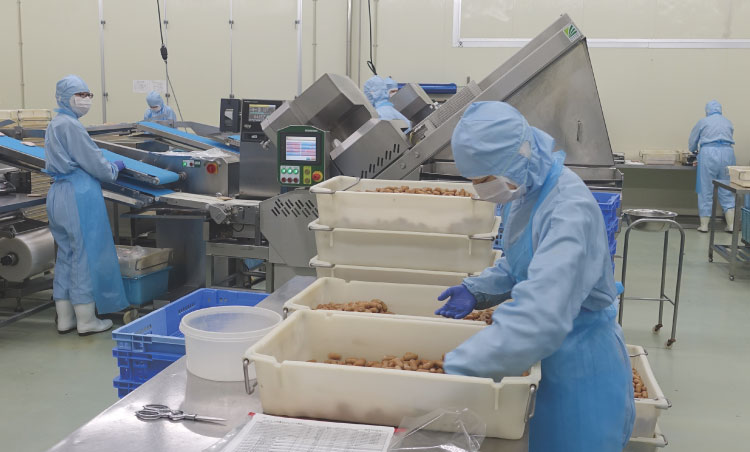 ウインナーの包装などが行なわれるクリーンルーム