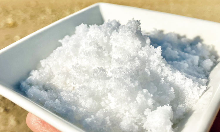 生活クラブの真塩は、メキシコ産、オーストラリア産の天日塩を、沖縄の海水に溶かした濃い塩水が原料です。塩水を煮詰め、乾燥させることで真塩ができます。まろやかな塩気でどんな料理にもなじむのは、海水由来のマグネシウムやカルシウム、カリウムなどさまざまな成分が含まれているからです。