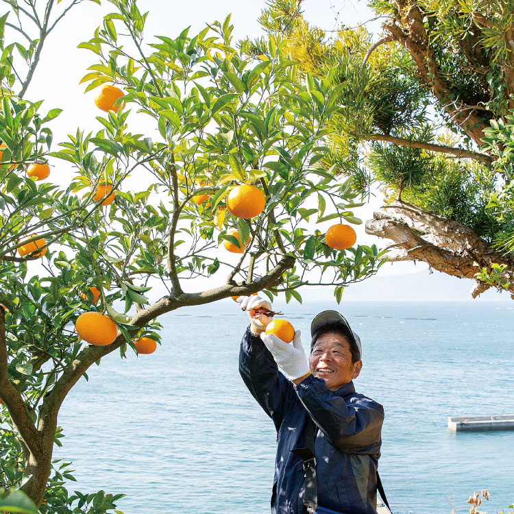 漁業を生業としていた漁師たちは、海に面する傾斜地を切り拓き、甘夏みかんづくりを開始。それから50年以上、「この地域を農薬で汚染するわけにはいかない」との想いで、きばるでは農薬を減らした栽培を続けています。