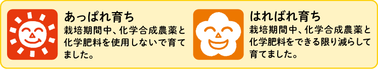 あっぱれ育ち、はればれ育ち野菜は栽培期間中※1に削減指定農薬(毒性の強い農薬)を使用していません※2。