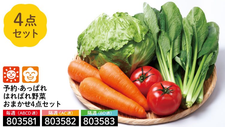 生活クラブには、一度予約登録すると決まったサイクルで野菜が届く「予約・あっぱれ・はればれ野菜6点セット」と「予約・あっぱれはればれ野菜おまかせ4点セット」があります。組合員にとって便利なだけでなく、提携産地や指定産地が野菜を安定して生産・供給しやすい仕組みになっています。
