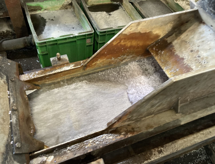 生活クラブが回収したピッキング袋が通過するフィルターは30分に1回、牛乳キャップが通過するフィルターは半日に1回、取り換えられています。異物混入が多いとフィルターの交換頻度が高くなり、リサイクルの効率も悪くなります。回収に出す前に異物が混ざっていないことをよく確かめることが大切です。また、濡れているとカビの原因にもなるため、キャップはさっと洗ってよく乾かすことも重要です。