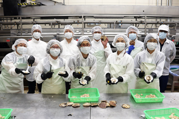 組合員は雄武の主要な魚介類であるほたてと、秋鮭の生産現場を見学しました。雄武では水揚げしたほたてや秋鮭の加工などを同じ地域のなかで行なえることが、鮮度や品質を高く保てるポイントです。また雇用を生みだし地域の活性化にもつながっています。今回は冷凍工場でほたての殻むき作業を体験。専用のヘラで貝を開いてひもや内臓を取り除き、貝柱を外していきます。生産者は次々と手早くきれいにむいていき、熟練の技を見ることもできました。