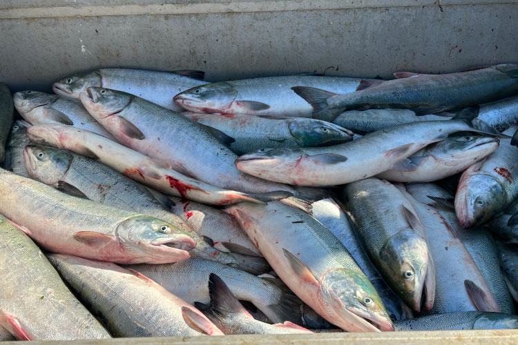 漁協管内の沢木漁港で水揚げされたばかりの秋鮭