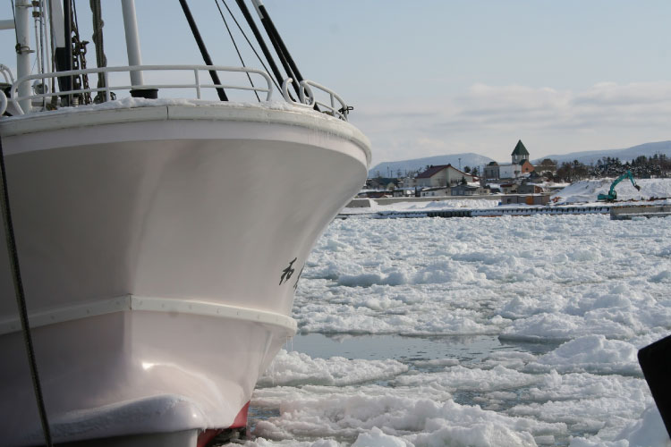 真冬には流氷が漁港周辺を覆いつくします(写真提供:雄武漁協 是川隆之さん)