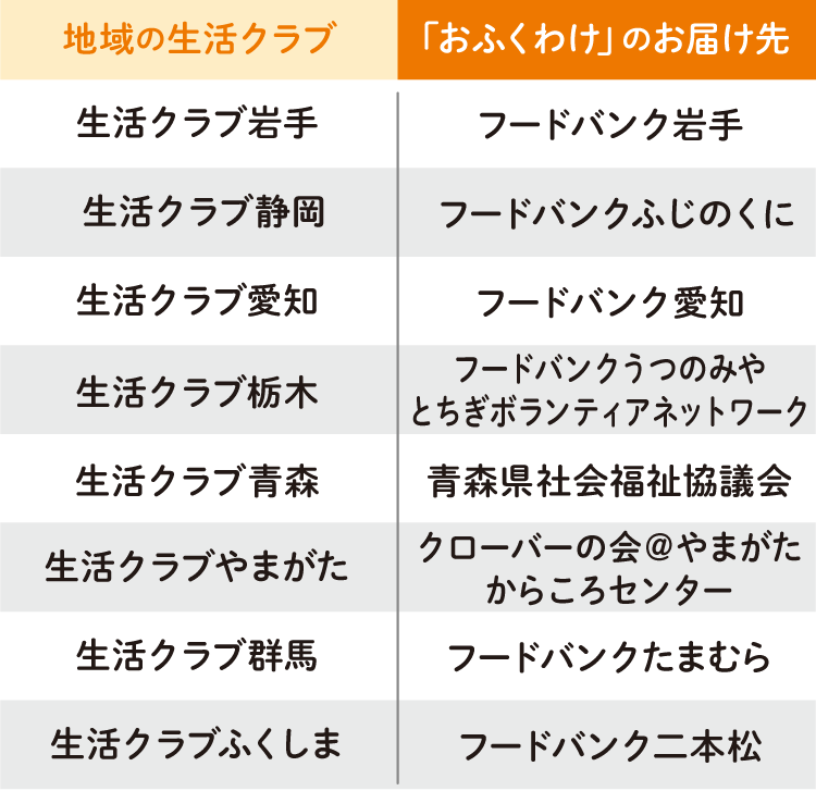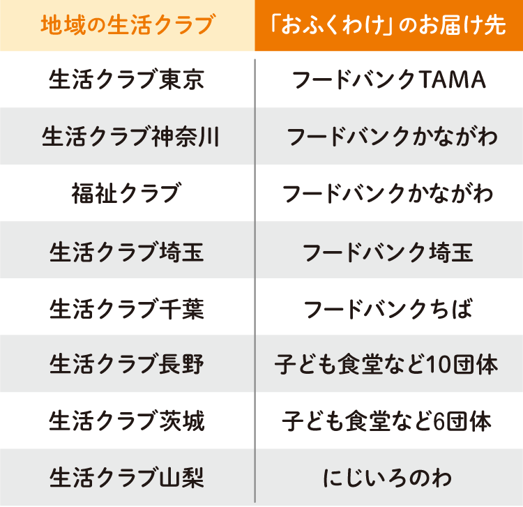 一部の地域(生活クラブ東京・神奈川・埼玉・長野・茨城・山梨・愛知・奈良)から始まった「おふくわけ」は支援への共感が広がり、2025年度より生活クラブ全体での取組みとなりました。