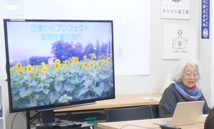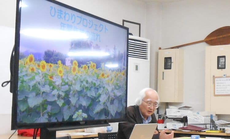 左から杉山さん、高野さん 届いたひまわりの種の選別作業についてお話しいただきました