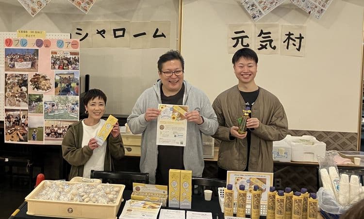 福島を拠点に障がいを持つ方たちへの支援活動を行なっている「一般社団法人シャローム福祉会(以下、シャローム)」のまちなか夢工房にお伺いし、大竹静子代表、大竹隆理事長、「ベーシック憩」の高野さん、杉山さんからお話を伺いました。