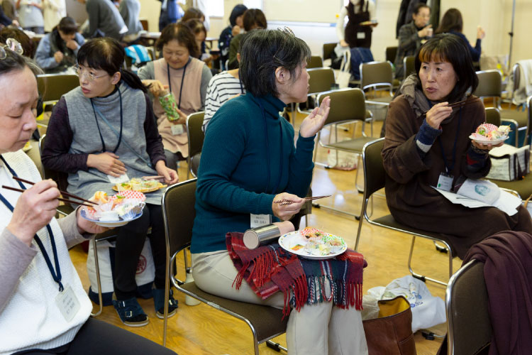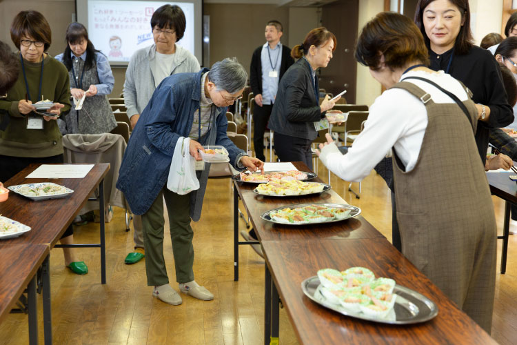 今回のスタート集会にあわせ、生活クラブ長野では「これ好き!」シリーズをいろいろな料理でもっと活用してもらえるよう「これ好き!レシピコンテスト」を実施。スタート集会の後半では、寄せられた22の応募レシピの中から選ばれた5品を組合員たちが再現し、参加者みんなで試食と投票をしました。