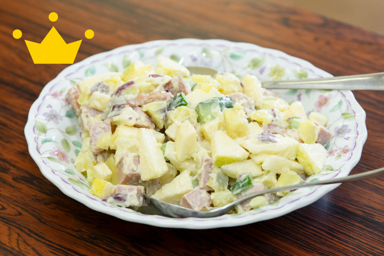 「これ好き!ソーセージのコロコロサラダ」。岩下さんが子どもの頃に食べた母の味をアレンジしたものだそう