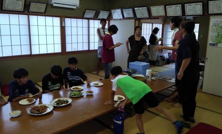 訪れた日の高崎は最高気温41℃を記録。暑さのせいか外を歩く人も見当たらないなか、会場となっている集会所のドアを開けると30人以上はいるでしょうか…未就学児から中学生の親子のほか、高齢者もいっしょにテーブルを囲んでにぎやかに食事をする風景が目に飛び込んできました。夏休み企画ということもあり、いつもより参加者は多いとのことです。まさに「みんなの食堂」です。