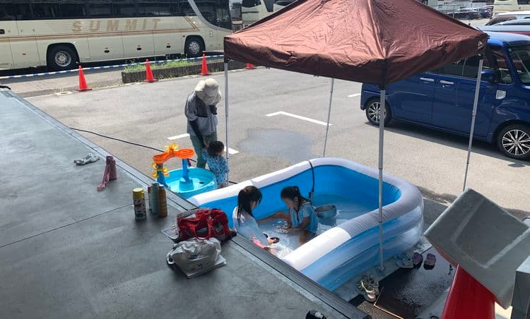 そのすぐそばでは、子どもたちが水遊びをしています。