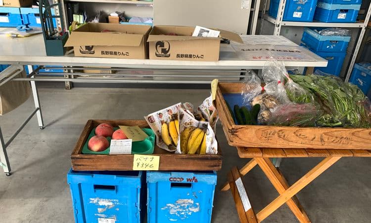注文したもの以外にも、箱単位のジュースを1本ずつ買えたり、セット野菜や果物もバラでその場で選んで購入することもできるようにしています。
