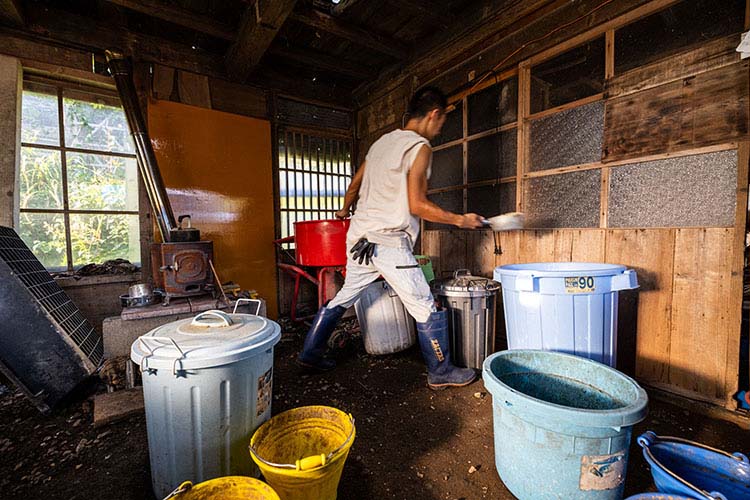 さて、そもそも自然卵養鶏とは何なのかというご質問を頂戴しました。自然卵養鶏法は1980年に私の妻の祖父にあたる中島正が同名の著書を通して提唱したものです。この養鶏法のポイントは「空気、日光、大地、水、緑餌(りょくじ)」にあります。良好な空気と十分な日光が必要なのはいうまでもなく、大地の存在も欠かせません。土壌には有用な微生物が無尽蔵に存在していますし、鶏は砂浴びをして体に付いた虫や病原菌を洗い落とします。やはり大地の上で育てるのが肝心です。さらに水。水は生物が生きていくためには不可欠な要素であり、鶏の体調にも影響しますから当農場では水道水ではなく天然水を利用しています。最後は緑餌です。人間は野菜を摂取することで健康を維持しています。それは鶏も全く同様で、中島正氏が著書で「緑草は太陽の缶詰」と評しているように、緑餌は鶏の体調管理に重要な役割を果たしています。これら五つのポイントを常に念頭に置き、私は米ぬかとおが粉を使い、自分で作った発酵飼料で鶏を飼育してきました。詰まるところ、中島正氏の著書に書かれたことを愚直に形にしようとしてきただけであり、決して難しいことはなく、あとは鶏が教えてくれました。
