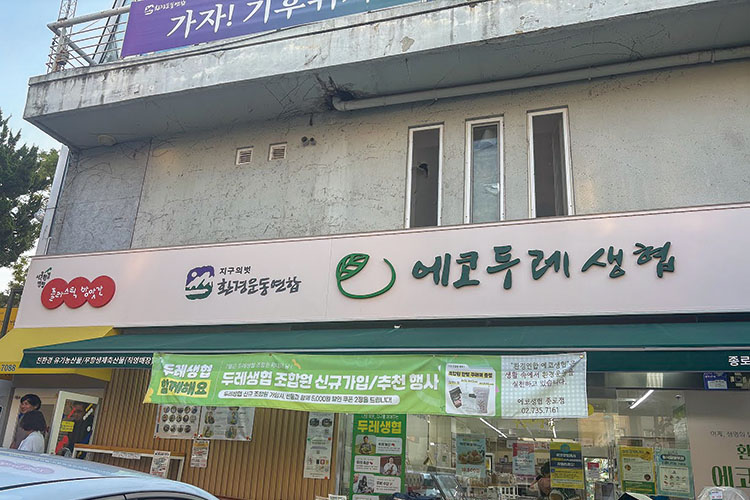 ドゥレ生協は、1997年に7つの生協による組織「生協首都連合会」から始まり、現在は28の会員生協が参加しています。「ドゥレ」とは韓国固有の言葉で、日本語の「結(ゆい)」※を意味します。生活クラブにとても近い理念を持つ生協で、人と自然が共生できる地域循環農業と、環境に配慮した暮らしをめざして、組合員と生産者が「生活材」を共同購入しています。