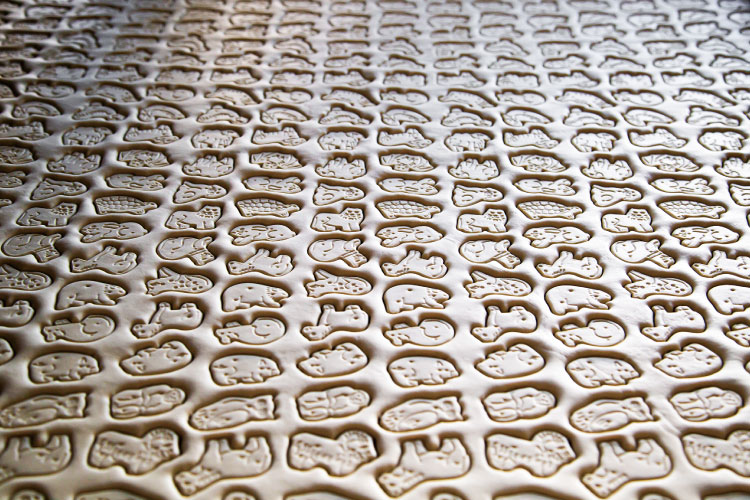 ビスケットの生地に金型が押し当てられると、25種類の動物の形が抜かれ、次々とオーブンの中へ移動していく。飽きずに見ていると、香ばしく甘い香りが漂い始め、ほぼ10分後には、ふっくりとした動物ビスケットが焼き上がる。「ご近所からは、パンを焼いているのですか、とよく聞かれますよ」と、取締役の石崎みどりさんがほほ笑む。