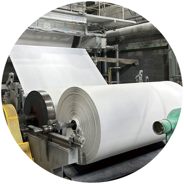 「無漂白ロールペーパーシングルソフト」用の紙をドライヤーで乾かし、巻き取る工程。