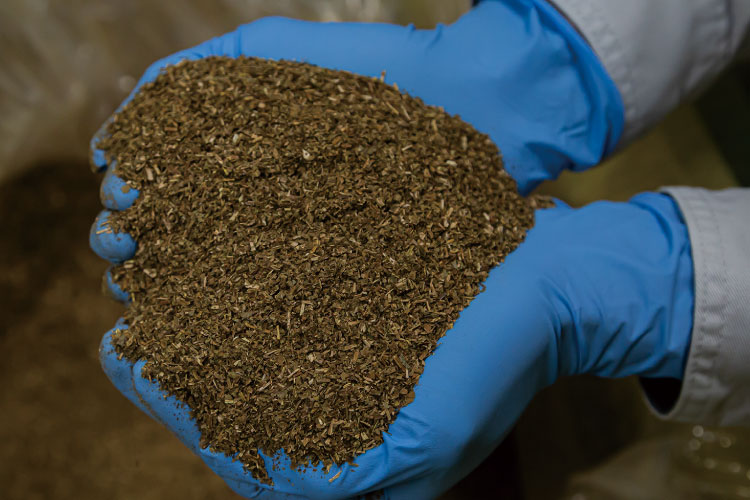 「雑草といわれる植物の中には、健康に暮らしていくために役立つ薬草がたくさんあります。ヨモギや、ドクダミなどは薬草として使われる宝物で、身の回りに薬箱があるようなものです。それが、高度経済成長の中で忘れ去られていきました」と、黒姫和漢薬研究所の取締役、企画室長の狩野森(しん)さんは言う。黒姫和漢薬研究所では、そういった植物をさまざまにブレンドして山野草茶を作る。「薬効の成分を取り出して調子の悪い時だけ飲むのではなく、日常茶として毎日飲み健康を保つお茶であることが大事です」と話すのは、代表取締役で、森さんの父、狩野土(はかる)さんだ。