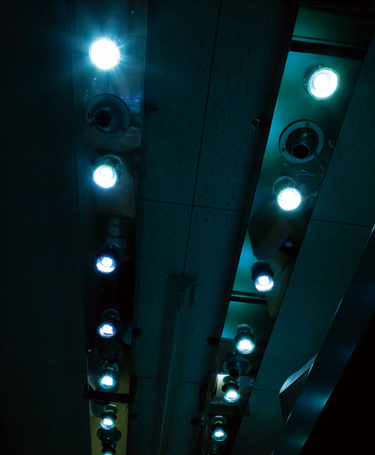 焙煎後ブレンドしたお茶は、5畳ほどの部屋で一定期間貯蔵される。特殊なLED電球の光で満月の夜を再現した、心地よい音楽と風が流れる部屋だ。「太陽の光は物を成長させ、月の光は内面の質を高めるといわれています。山野草が持つエネルギーを最大限に引き出したいと、24年前に作りました」と土さん。「見た目には変化がありませんが」と笑うが、黒姫で作られるお茶が、できるだけおいしく飲んでもらえるものになるようにと願いを込めている。