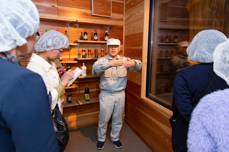 寄贈式終了後、組合員は木桶蔵や工場を見学しました。