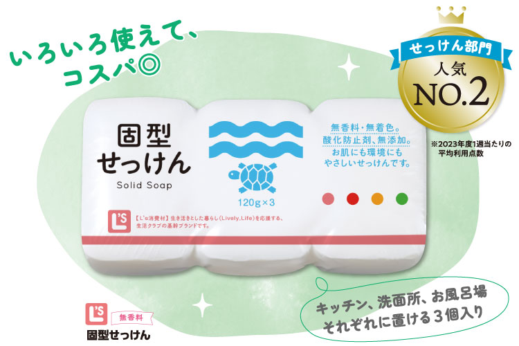 トップ 〉 生活クラブの食材・品物 〉 消費材グループ せっけん・雑貨 〉固型せっけん