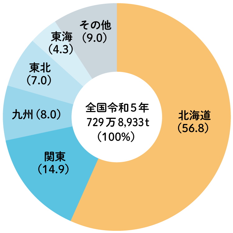 生活クラブでは、乳牛のえさや生乳の殺菌方法など、酪農家から組合員に届くまでの過程がきちんとわかる牛乳をめざし、1979年に酪農家と共同で千葉県に牛乳工場を設立。現在では千葉・栃木・長野にある牛乳工場と近い指定酪農家の生乳で、パスチャライズド牛乳はつくられています。その一方、現在日本で生産されている生乳の約57%は北海道産で、それ以外の都府県では酪農家が減り続けています。生活クラブの指定酪農家も例外ではありません。そこで生活クラブでは、よやくして利用する「よやくらぶ」や酪農家を応援する「牛乳応援基金」など牛乳の利用を通じて生乳の生産を続ける力につなげています。