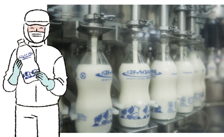 指定酪農家から届いた生乳は、生活クラブの厳しい自主基準に沿って検査後、殺菌されてすみやかに充填されます。