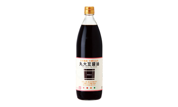 原料の大豆には国産大豆を30%使用。外国産大豆についても遺伝子組み換えの疑いのない原料を使用しています。丸大豆を原料に木桶で1年間天然醸造しています。