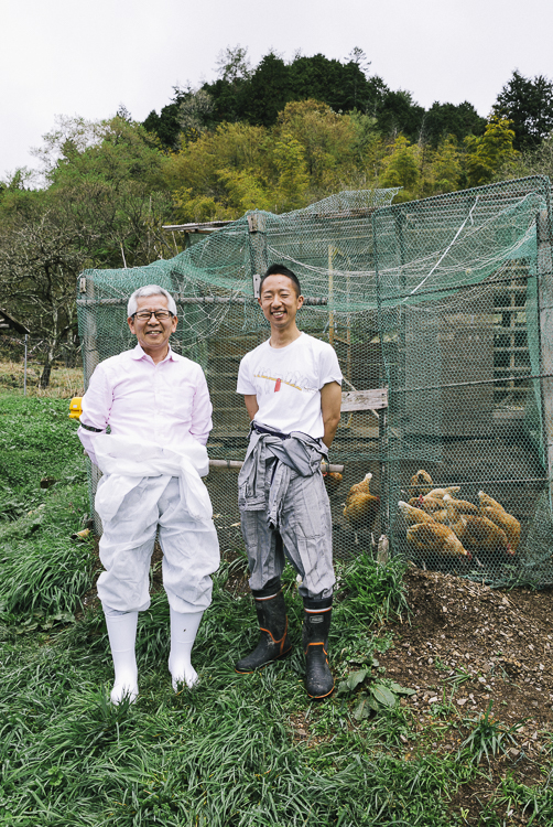 「うちのもみじたちは病気とは無縁。生後700日齢を過ぎた7羽が現在も卵を産んでくれますし、まさしく健康そのものです」と中村さん。その秘訣は自家製飼料と緑餌、良質な水に、きれいな空気のなかでの「自然飼育」にあり、中村夫妻は一坪に10羽という中島正さんの教えを遵守しています。そんな建夫さんの言葉に「本当にいい鶏です。体格もしっかりしていますし、羽毛につやがある。ここまで見事な育ち方をしたのは珍しいですし、これが当社の鶏の本来の性能かと驚きを禁じ得ません」と日比野さんが目を細めます。