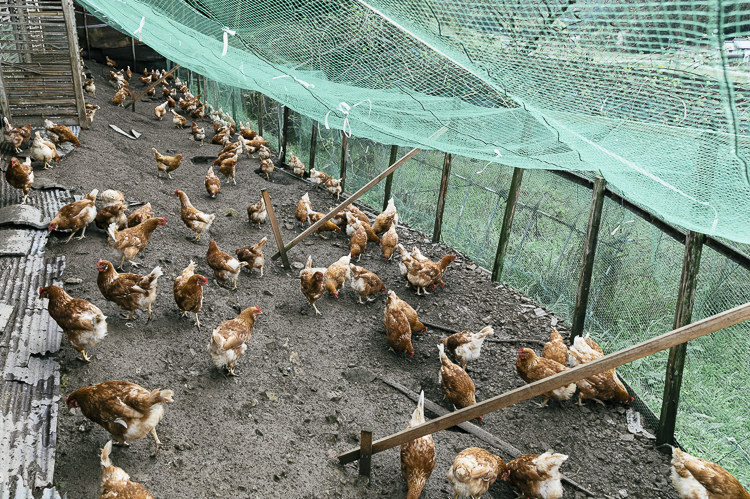 中村さんの鶏舎は3棟。すべて手作りで運動場と産卵場が用意されています。「天敵はキツネ。犬が懸命に吠えて追い払ってくれるのですが、あいつらは賢い。地面を掘って入れる場所を必ずつくります。先だって狙われた鶏舎にいた140羽はキツネの襲撃を警戒するあまり、ナーバスになって少しばかり攻撃的になってしまいました」と建夫さん。なるほど、いわれてみれば別の鶏舎の鶏よりも、確かに若干鳴き声はけたたましい。それでも「うるさい」というほどではないのが印象的でした。